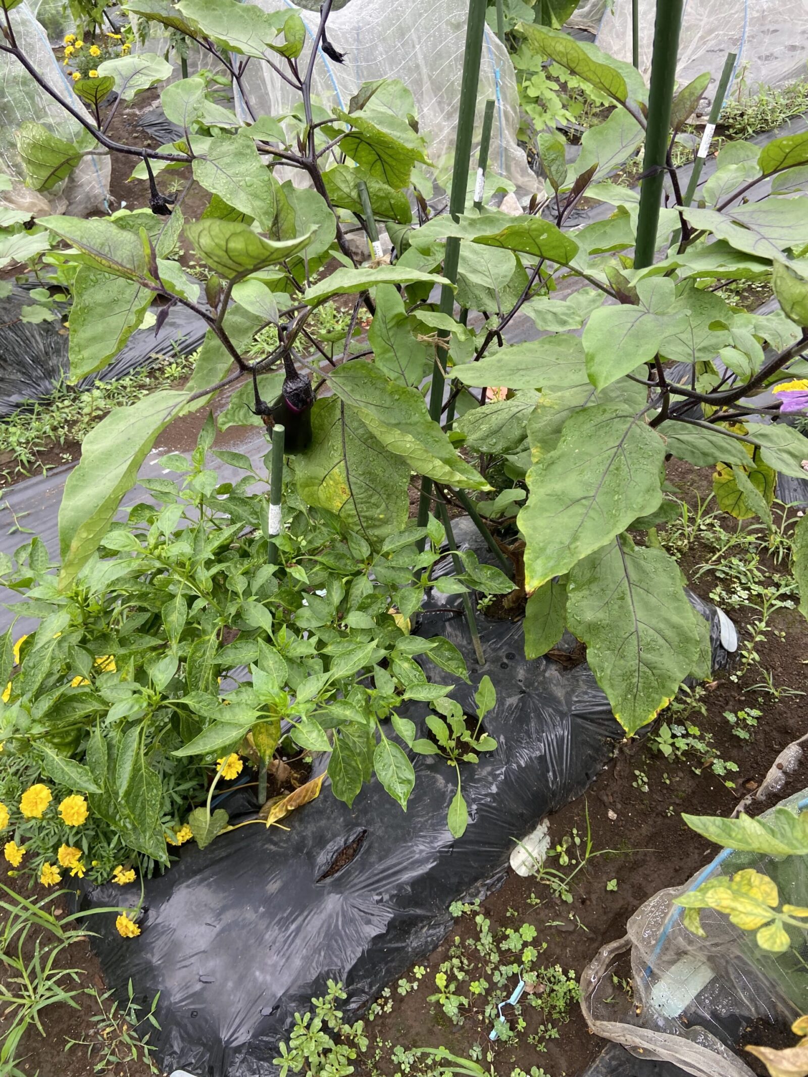 急激な雨にナスは疲れてしまったように見える。ピーマンは比較的元気だった。今日の一番の目的だったエダマメくん。実がぷっくりしたのがずいぶん増えた。今日はエダマメくんの収穫に勤しんだ。