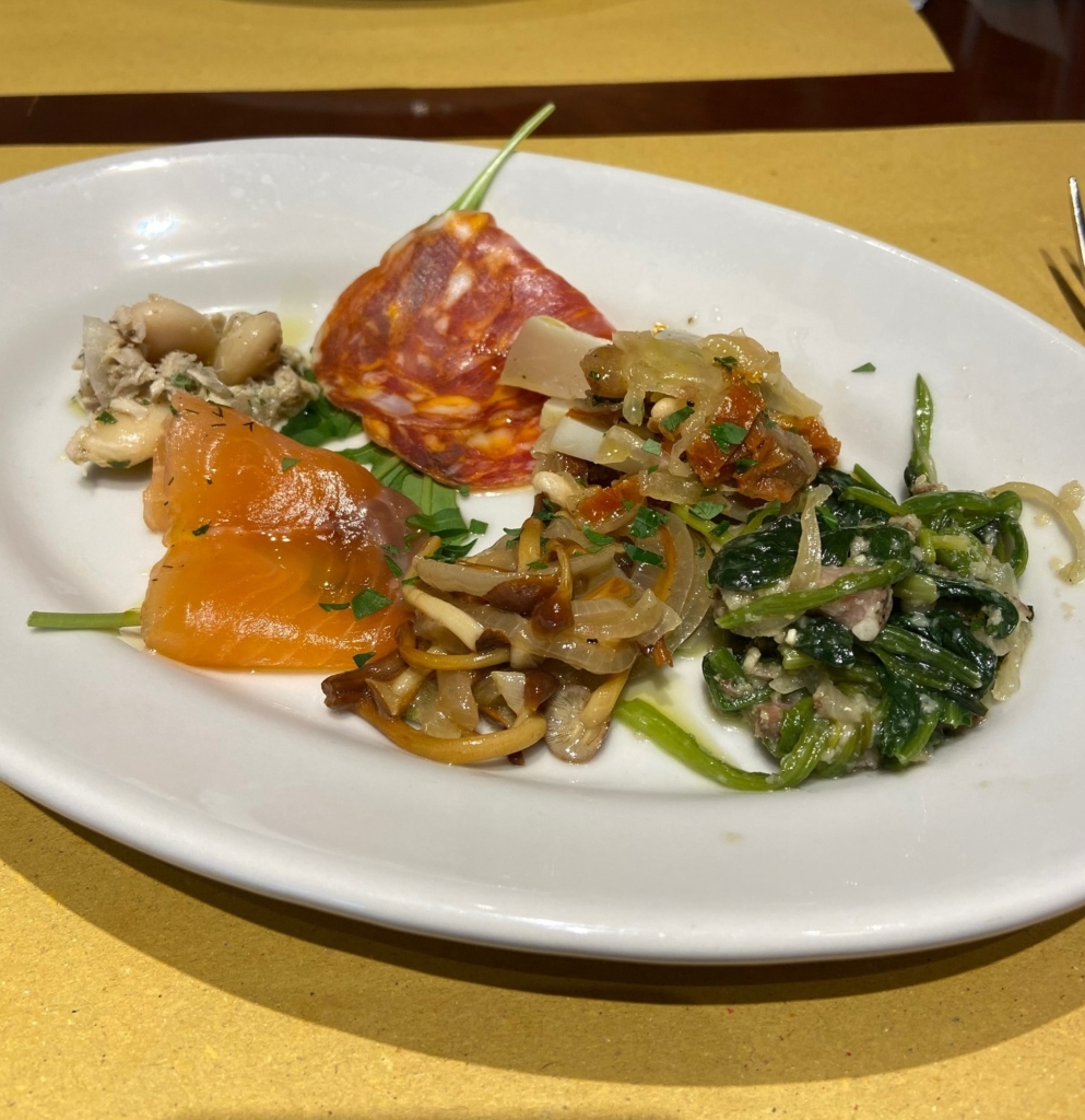 前菜の盛り合わせは5種。母と私で内容が違うところもおもしろい。けっこうボリュームあるが、味が想像したよりあっさりしていて、あっという間にペロリ。